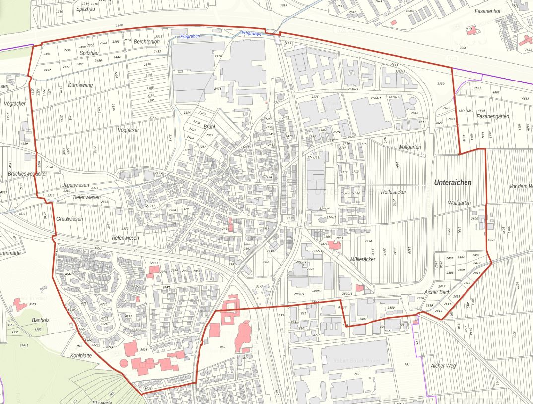 Aktuelles Kartenmaterial mit Gemarkungsgrenze